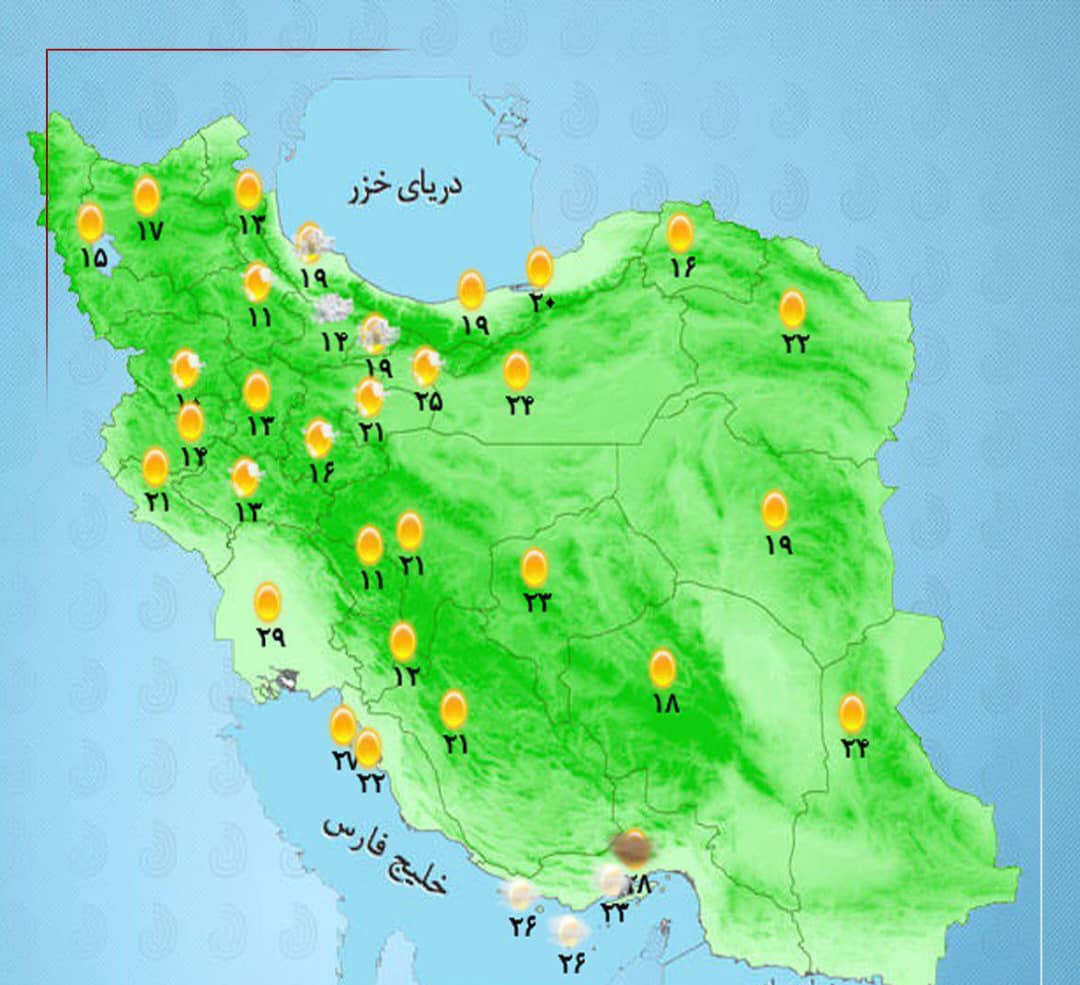 مروز در برخی نقاط استانهای آذربایجان غربی و شرقی، اردبیل، کردستان، زنجان، همدان، مرکزی، قزوین، البرز، تهران، گیلان و غرب مازندران رگبار باران، رعدوبرق، وزش باد شدید موقت، در برخی نقاط گردوخاک تداوم خواهد داشت.