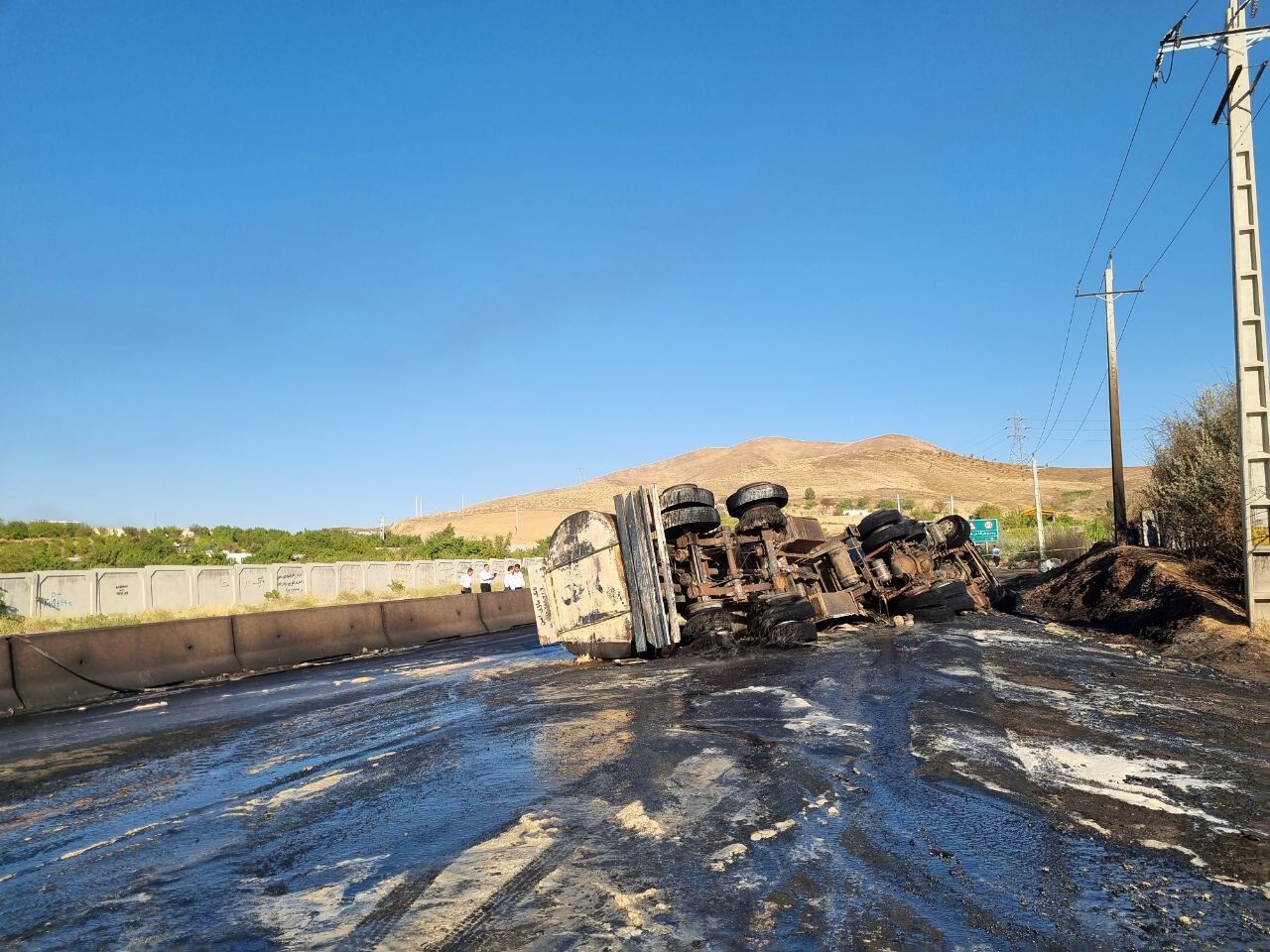 انفجار نفتکش در محور مریوان/ آسمان سنندج پر از دود شد