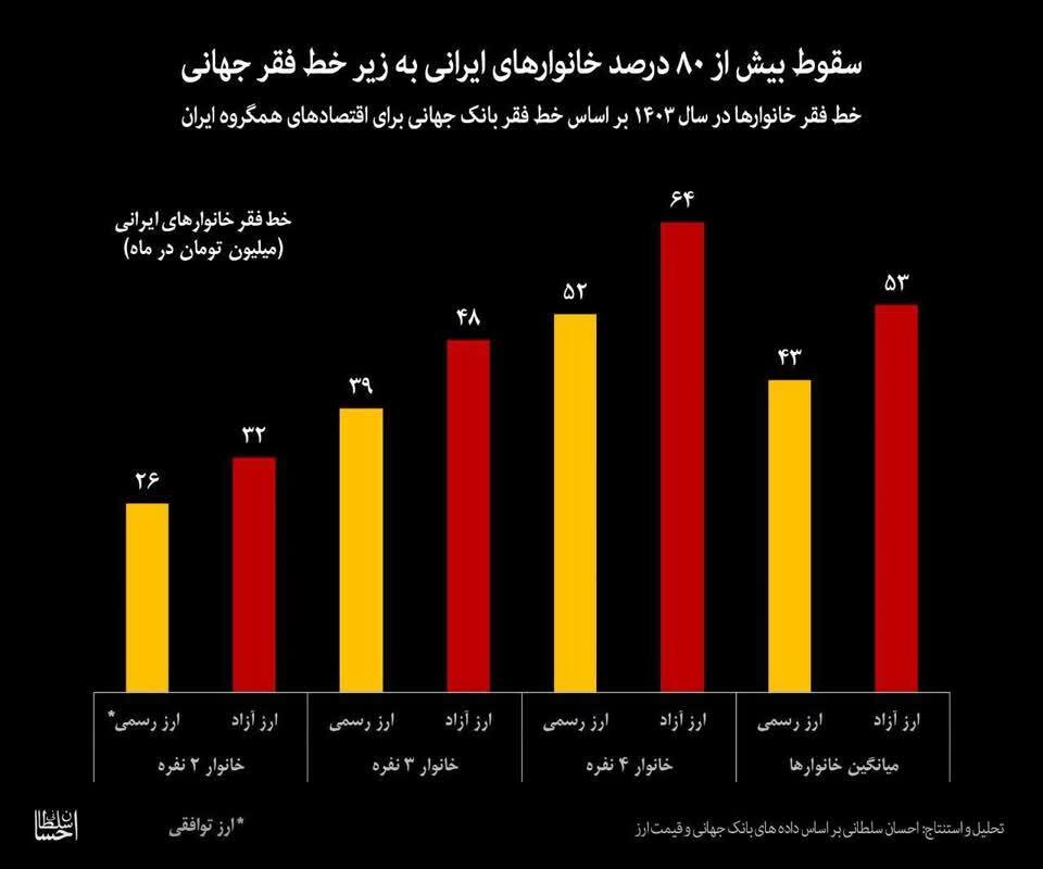سقوط بیش از ۸۰ درصد خانوارهای ایرانی به زیر خط فقر جهانی!