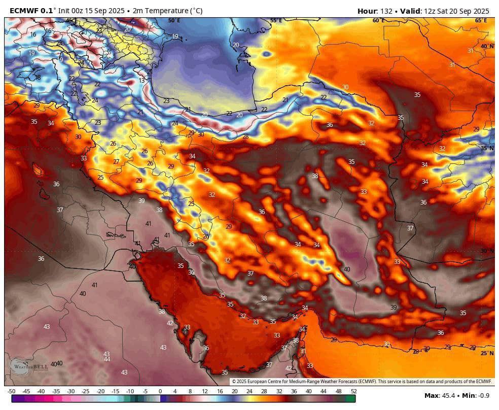 شنبه هفته آینده پس از ماه ها دمای بیشینه به زیر ۳٠° درجه خواهد رسیدـ