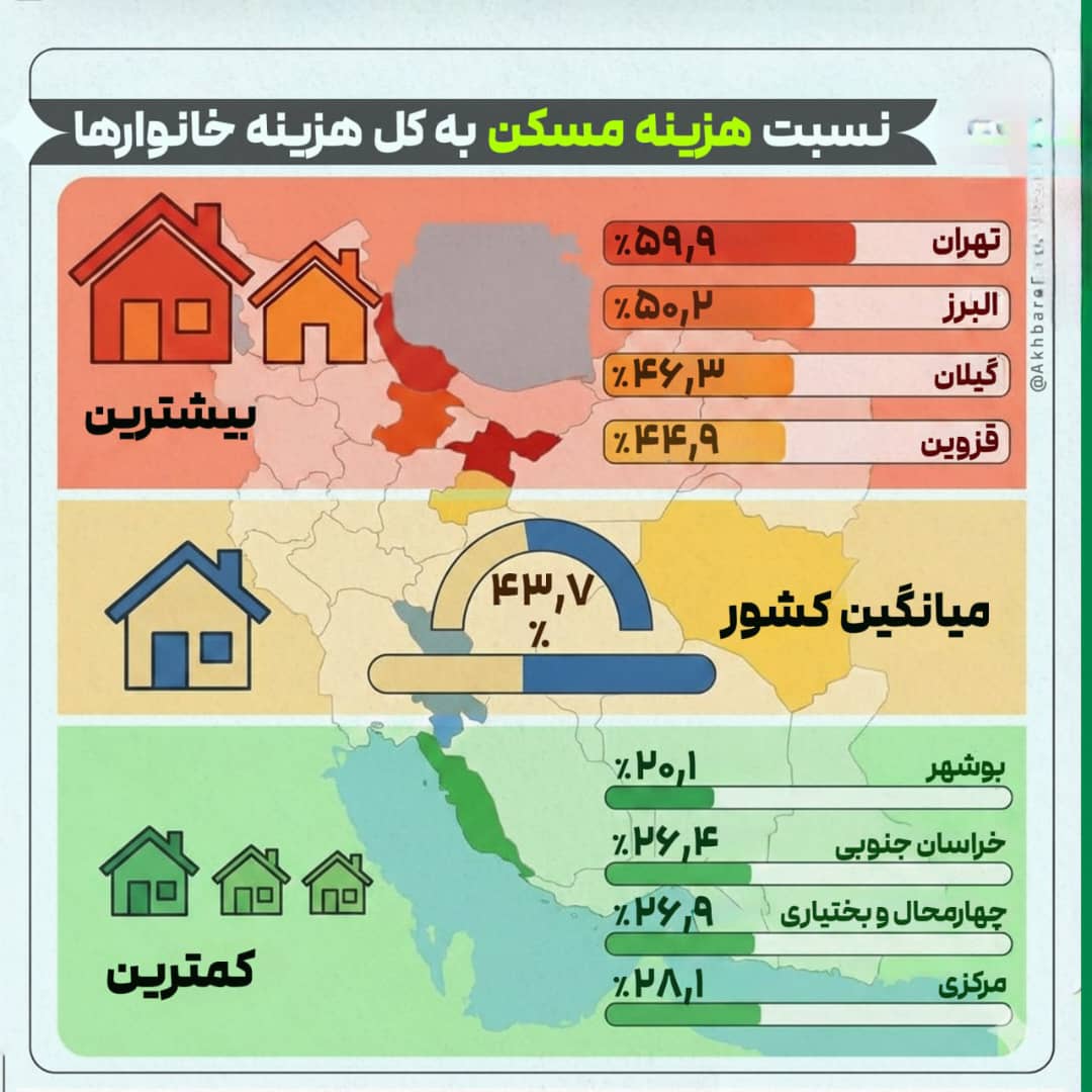 میانگین هزینه مسکن به کل هزینه خانوار در کشور ۴۳.۷ درصد است.