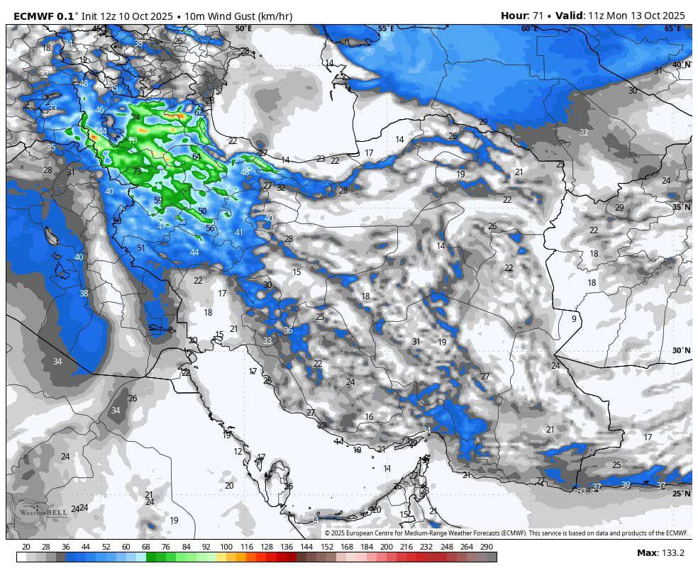 امروز در کل استانهای غرب کشور وزش باد بسیار شدیدی پیشبینی شده است. سرعت باد در برخی نقاط ممکن است تا بیش از ۶۰ کیلومتر بر ساعت نیز برسد.در باقی روزهای هفته هوایی نسبتاً آرام پیشبینی شده است.