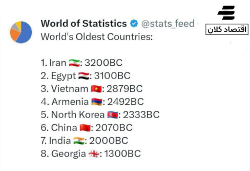 فهرست قدیمیترین کشورهای جهان بر اساس منابع جهانی رتبه اول را ایران دار که ۳۲۰۰ سال پیش از میلاد مسیح است