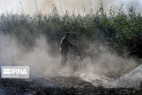 ۱۵ هکتار از نیزارهای زریبار در آتش سوخت