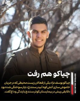 چیاکو هم رفت چیاکو یوسف نژاد یکی از فعالان زیست محیطی که در جریان خاموش سازی آتش کوه ئاویه ر- آبیدر سنندج دچار سوختگی شده