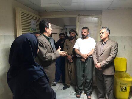 عیادت و دیدار فرماندار سنندج با خانواده جوان مریوانی مصدوم در حادثه آتشسوزی جنگلها غریب سجادی با حضور در مرکز درمانی توحید از ریبین گورانی،