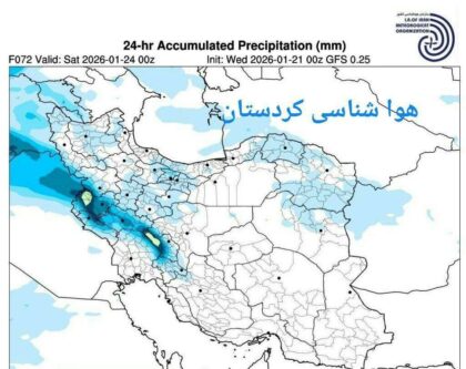 سامانه بارشی روز جمعه وارد استان #کردستان میشود. این سامانه استان های #کردستان کرمانشاه، ایلام، لرستان، چهار محال و بختیاری پیش بینی می شود در